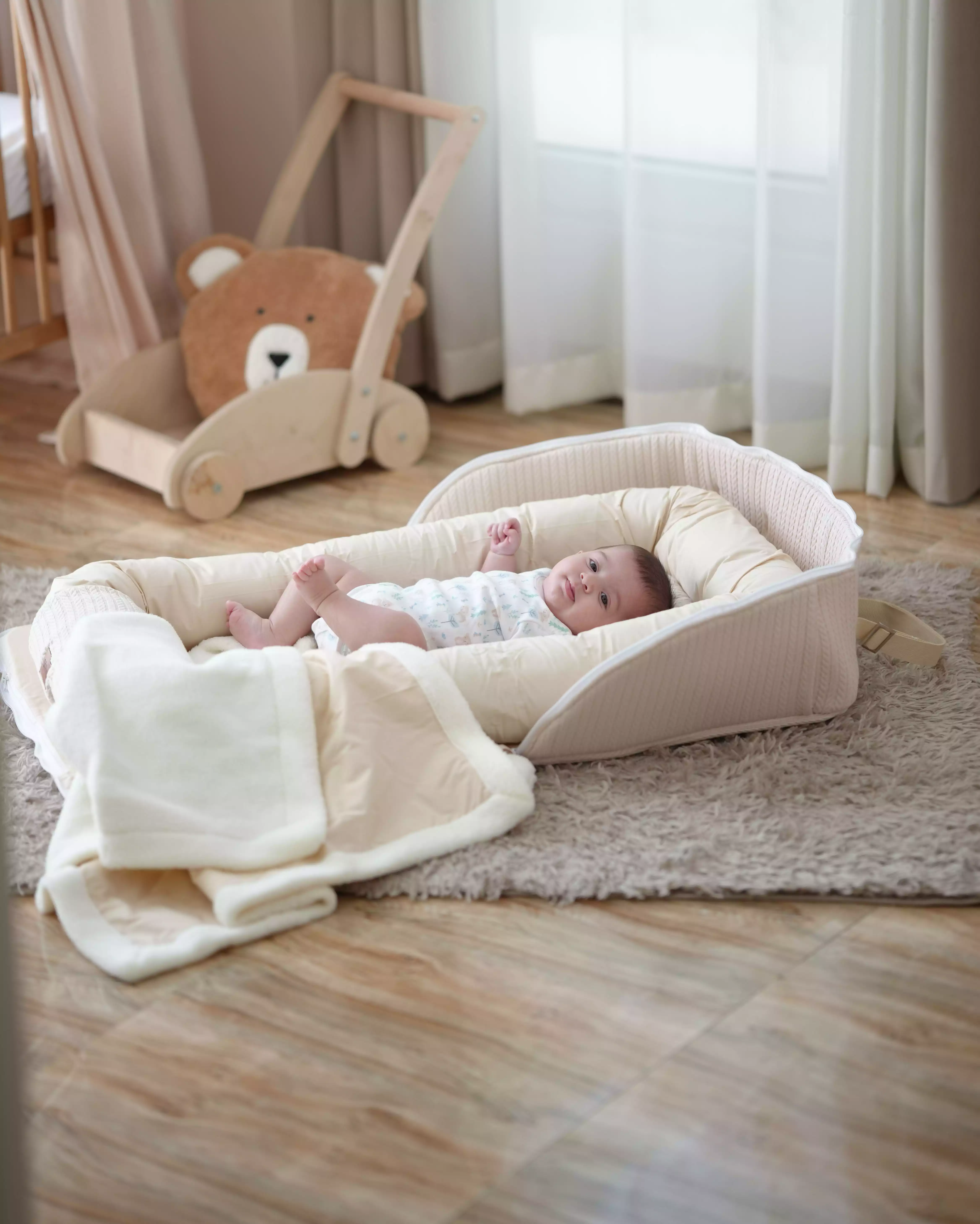 تشک گارددار که گاهی اوقات به آن آشیانه کودک (Baby Nest) نیز می گویند، یک تخت نیست، بلکه یک تشک بیضی شکل با کناره ها یا لبه های نرم برای جلوگیری از غلتیدن کودک است. سبک و قابل حمل است تا بتوانید به راحتی آن را از اتاقی به اتاق دیگر منتقل کنید و همچنین در هنگام سفر آن را با خود ببرید. این محصول عالی برای اینکه کودک شما در هر کجا که هستید احساس کند در خانه است و بهتر از آن حس بودن کودک در آغوش شماست.